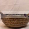Thado or Thadobati singing bowl has special highlights as they have a flat bottom. These singing bowls are relatively deep as contrast with other singing bowls. These singing bowls are most common ancient singing bowl. Generally, “Singing bowls” are made up of seven metals and is believed to be astrologically associated with the seven planets or celestial bodies which are Gold (Sun), Silver (Moon), Copper (Venus), Iron (Mars), Tin (Jupiter), Mercury (Mercury), Lead (Saturn). Singing Bowls also known as meditation chakra bowls, healing singing bowls or Himalayan singing bowls have been widely used since from the ancient times in Nepal and Tibet mostly by the Buddhist monks for meditation, religious ceremonial music, traditional ritual offerings, for praying as praying bowls and as traditional musical instruments. This product is a large hand-carved Buddha singing bowl, 27cm in diameter, which is used for meditation and sound therapy. This is a hand-hammered, hand-carved singing bowl with a Buddha image inside the bowl and sacred Mantra Om Mani Padme Hum outside. The carving is done by an expert hand and is extremely fine. This bowl has stunning acoustics and beautiful sound resonance and is easy to play.