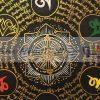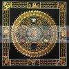 A thangka, variously spelt as thangka, tangka, thanka, or tanka (Nepali pronunciation: [ˈथान्का]; Tibetan: ཐང་ཀ་; Nepal Bhasa: पौभा), is a Tibetan Buddhist painting on cotton, silk appliqué, usually depicting a Buddhist deity, scene, or mandala. Thangkas are traditionally kept unframed and rolled up when not on display, mounted on a textile backing somewhat in the style of Chinese scroll paintings, with a further silk cover on the front. So treated, thangkas can last a long time, but because of their delicate nature, they have to be kept in dry places where moisture will not affect the quality of the silk. Most thangkas are relatively small, comparable in size to a Western half-length portrait, but some are extremely large, several metres in each dimension; these were designed to be displayed, typically for very brief periods on a monastery wall, as part of religious festivals. Most thangkas were intended for personal meditation or instruction of monastic students. They often have elaborate compositions including many very small figures. A central deity is often surrounded by other identified figures in a symmetrical composition. Narrative scenes are less common, but do appear.
